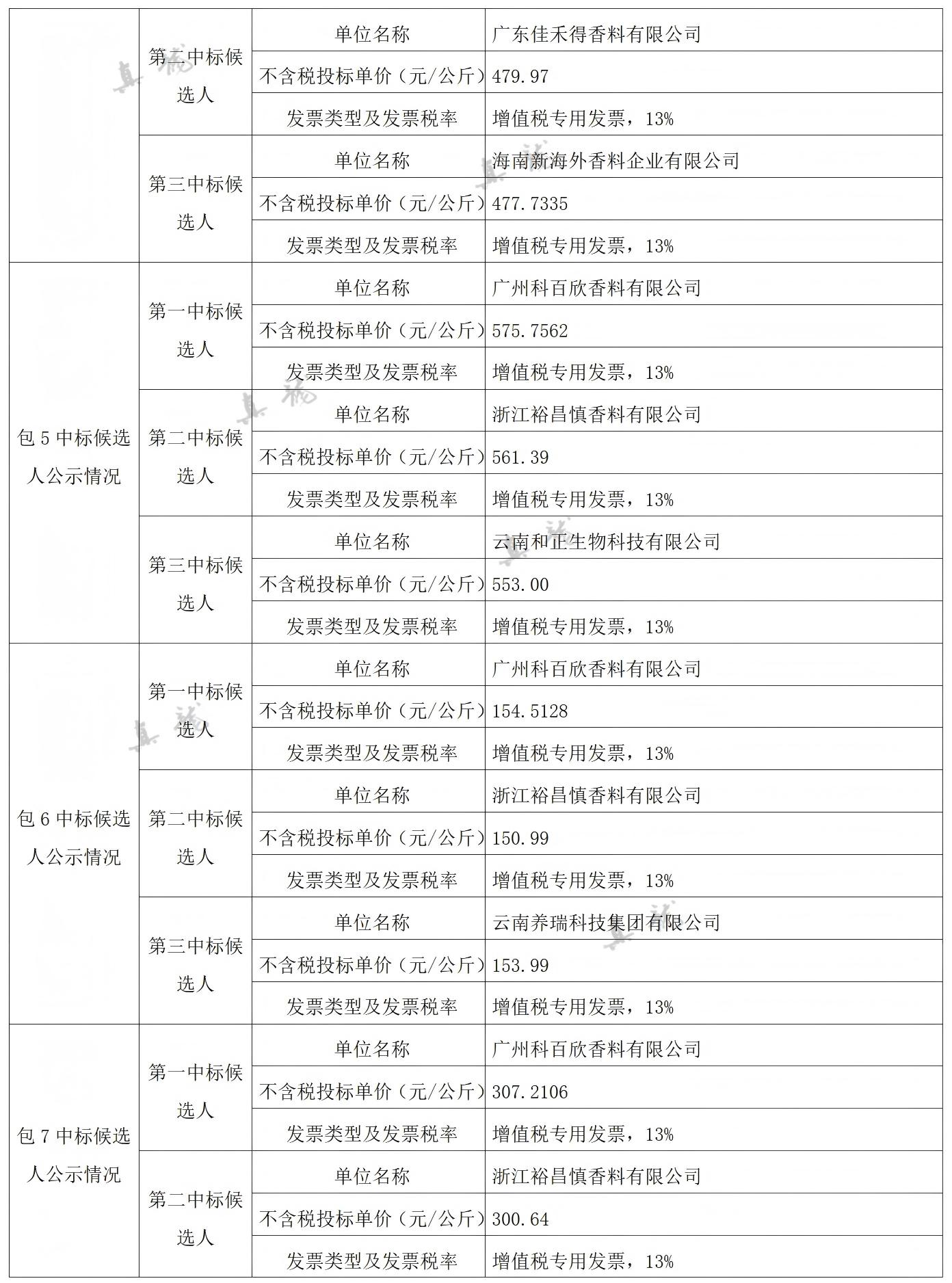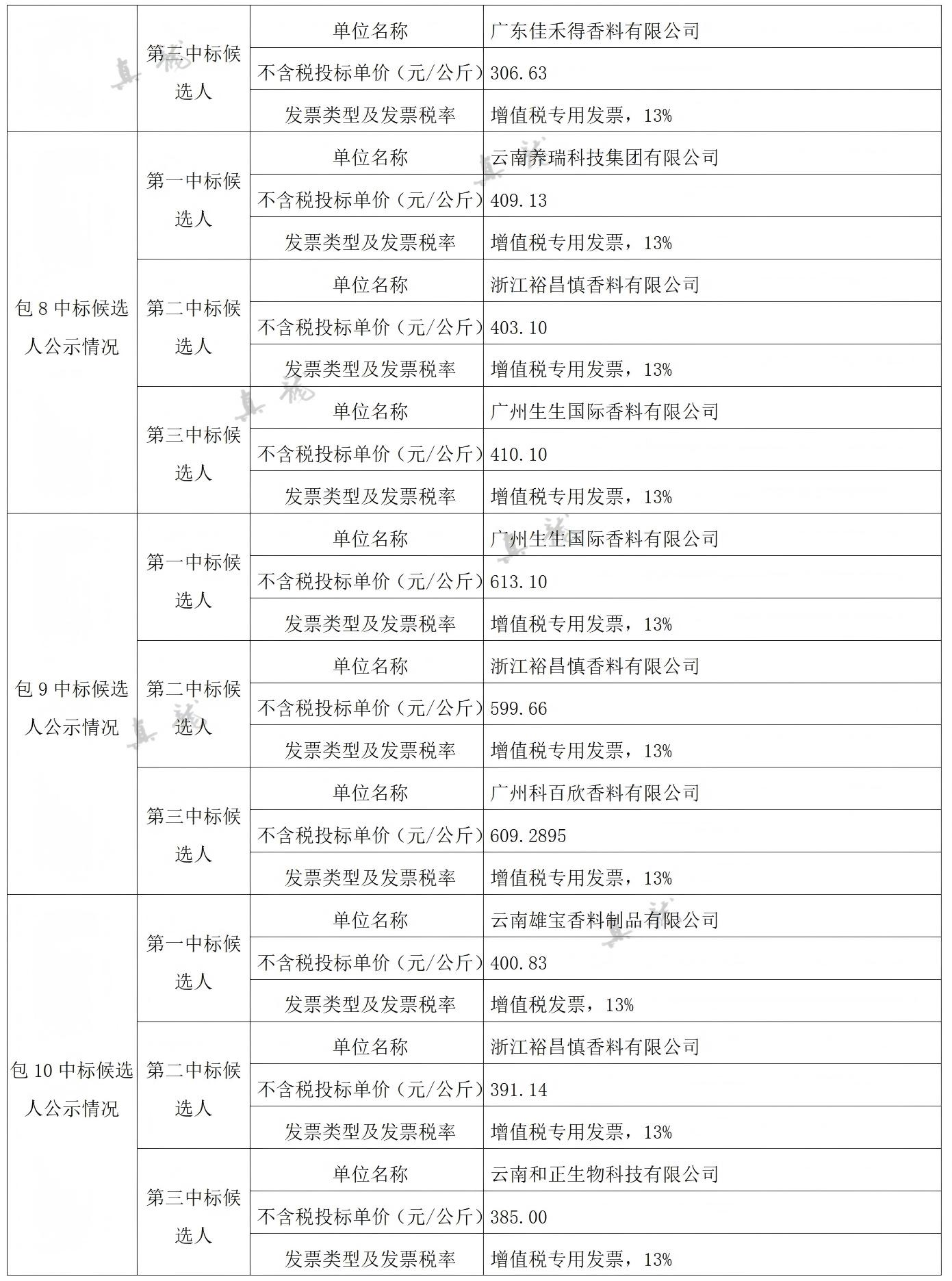 廣西中煙工業有限責任公司2026-2028年自主品牌香精香料采購之復合體采購第一批(項目編號:B202501BA2001767947560)中標候選人公示